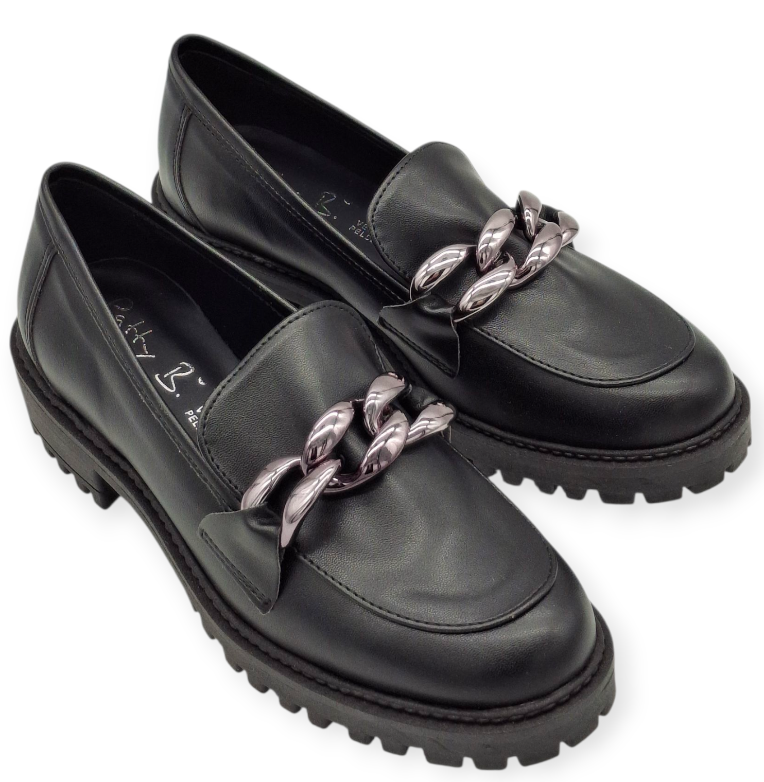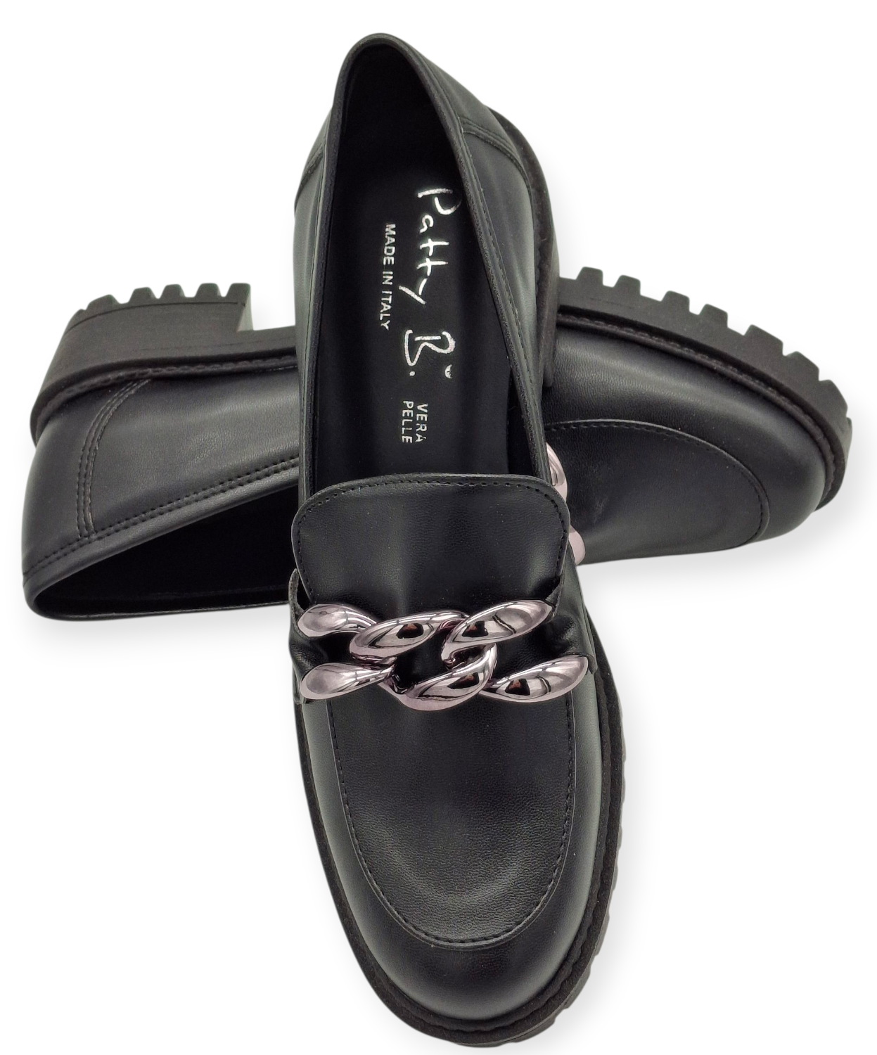 Mocassini Donna Chunky Neri Vera Pelle MADE IN ITALY Catena Argento Suola Alta