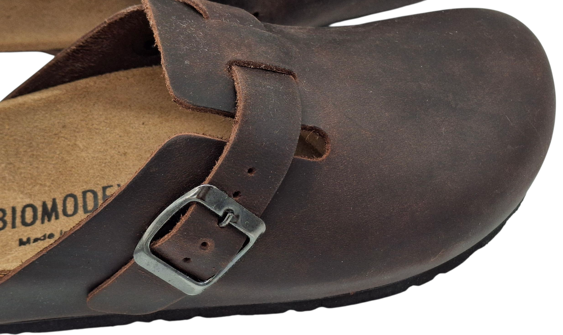 sabot BIOMODEX in vera pelle, modello Birkenstock Boston, prodotti artigianalmente in Italia per garantire la massima qualità e comfort. Ideali per uomo e donna, questi sabot presentano un design classico e funzionale, perfetti per l'uso quotidiano, in casa o all'aperto.